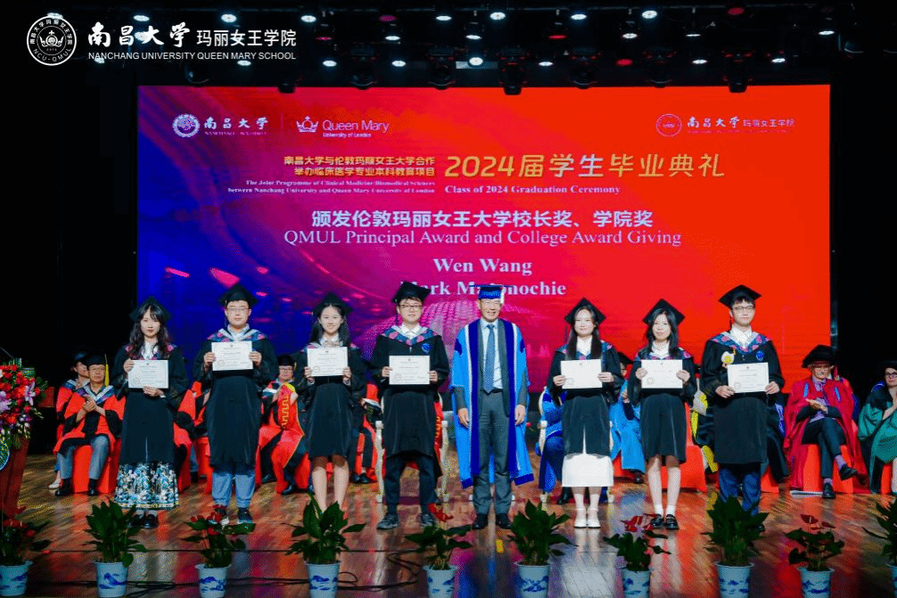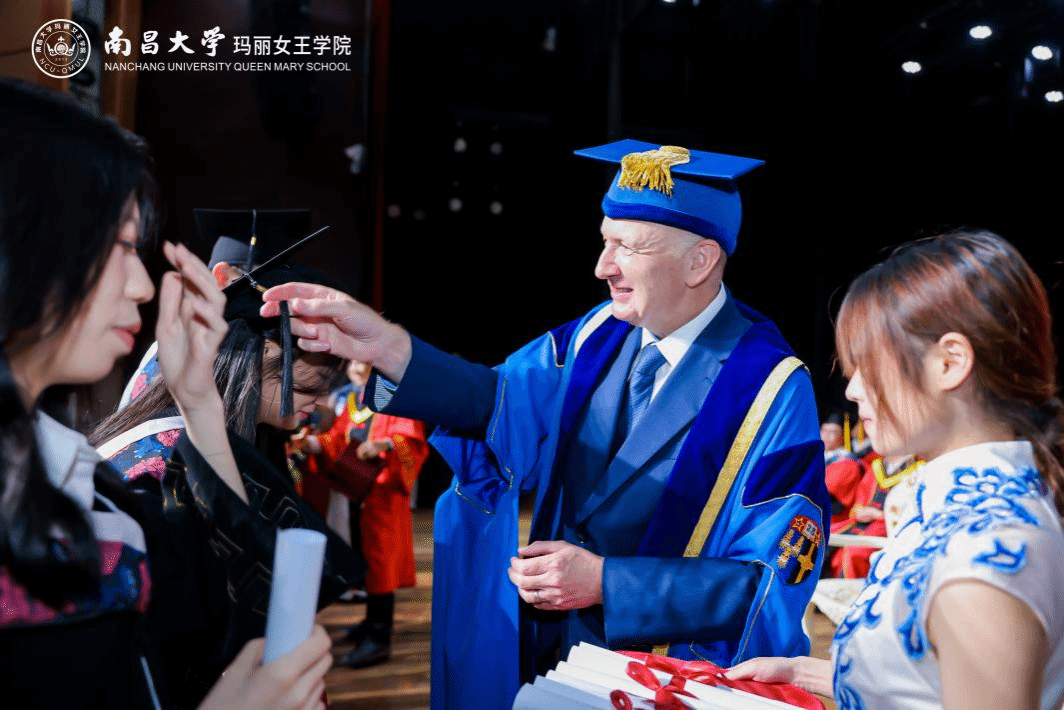 在頒獎和學位授予環節中,中英雙方領導為獲得南昌大學優秀畢業生獎、倫敦瑪麗女王大學校長獎、學院獎的優秀畢業生頒發榮譽證書。雙方校長為獲得學位的畢業生逐一撥穗并頒發學位證書。