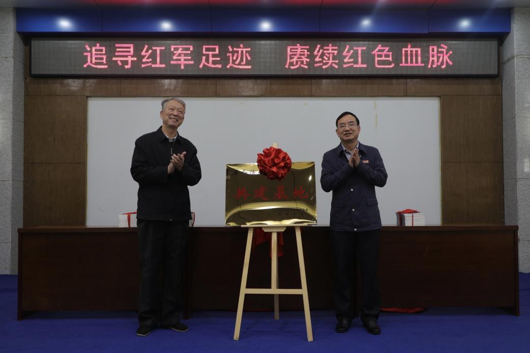 現(xiàn)場(chǎng),李華棟、喻曉社、鄭克強(qiáng)、李方明、陳堅(jiān)為新書啟封,與會(huì)領(lǐng)導(dǎo)為10所革命傳統(tǒng)教育基地院校、紅色場(chǎng)館單位捐贈(zèng)《贛粵邊雄鷹——楊尚奎在南方三年游擊戰(zhàn)爭(zhēng)中的革命生涯》等紅色書刊。喻曉社、陳堅(jiān)為革命傳統(tǒng)教育共建基地揭牌。