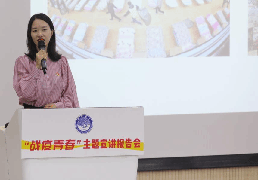 “前四位講者把本土作戰與援鄂‘戰疫’的感人故事說透,我將重點講述中華民族‘全球戰疫命運與共’的使命擔當。”附屬人民醫院李雅婷圍繞《構筑新時代全球戰疫的新長城》主題,帶領現場師生從三赴抗疫一線的附屬人民醫院院感處處長李福太的事跡中收獲感動,汲取力量,“千萬個李福太這樣的中國醫生扛起了全球‘戰疫’的脊梁,繪出了人類命運共同體的偉大同心圓。”