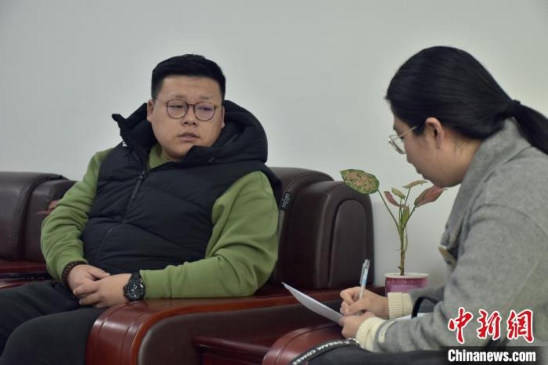 圖為南昌大學共青城光氫儲技術研究院辦公室主任張皓然(左一)接受記者采訪。巫發陽 攝