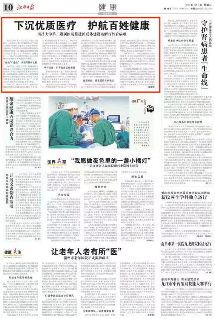 作為江西省最早成立的綜合性公立醫院之一,南昌大學第二附屬醫院(以下簡稱“二附院”)為響應國家醫療衛生改革政策,全面啟動了多種形式的醫聯體建設,推動優質醫療資源下沉,增強基層醫院服務能力,形成了“基層首診、雙向轉診、急慢分治、上下聯動”的分級診療模式,讓江西百姓隨時隨地享受到優質的醫療服務。