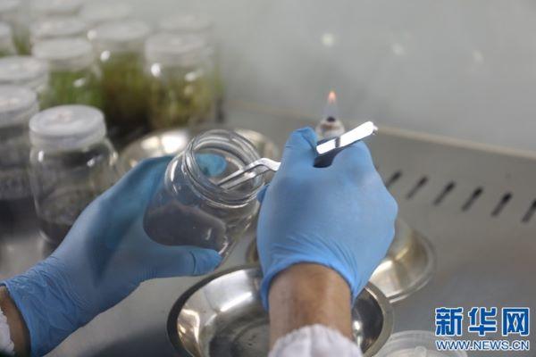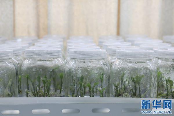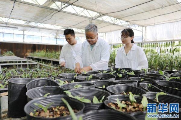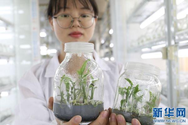 五年前,大黃花蝦脊蘭在人跡罕至的山間款款盛開。五年后,數萬株小苗在南昌大學楊柏云團隊的實驗室里茁壯生長。(新華網 吳亞芬 攝)