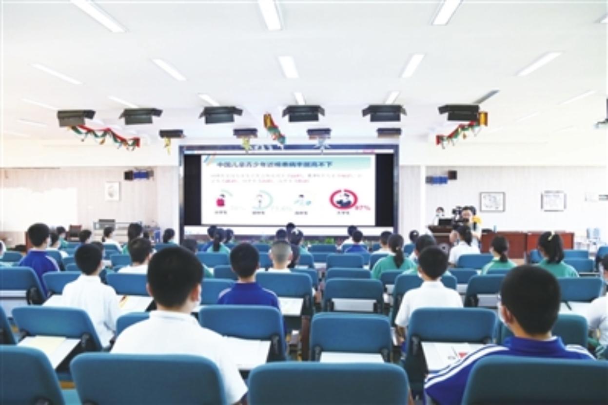 “什么是近視?”“近視如何防控?”“已經近視了如何科學矯正?”……為迎接6月6日第25個全國“愛眼日”,6月4日下午,南昌大學一附院“健康1講堂”走進江西師范大學附屬中學濱江分校,該院眼科專家劉新華主任醫師、感控處劉珉玉等為初一年級學生進行了“科學防控近視,關注眼健康”健康宣講活動。