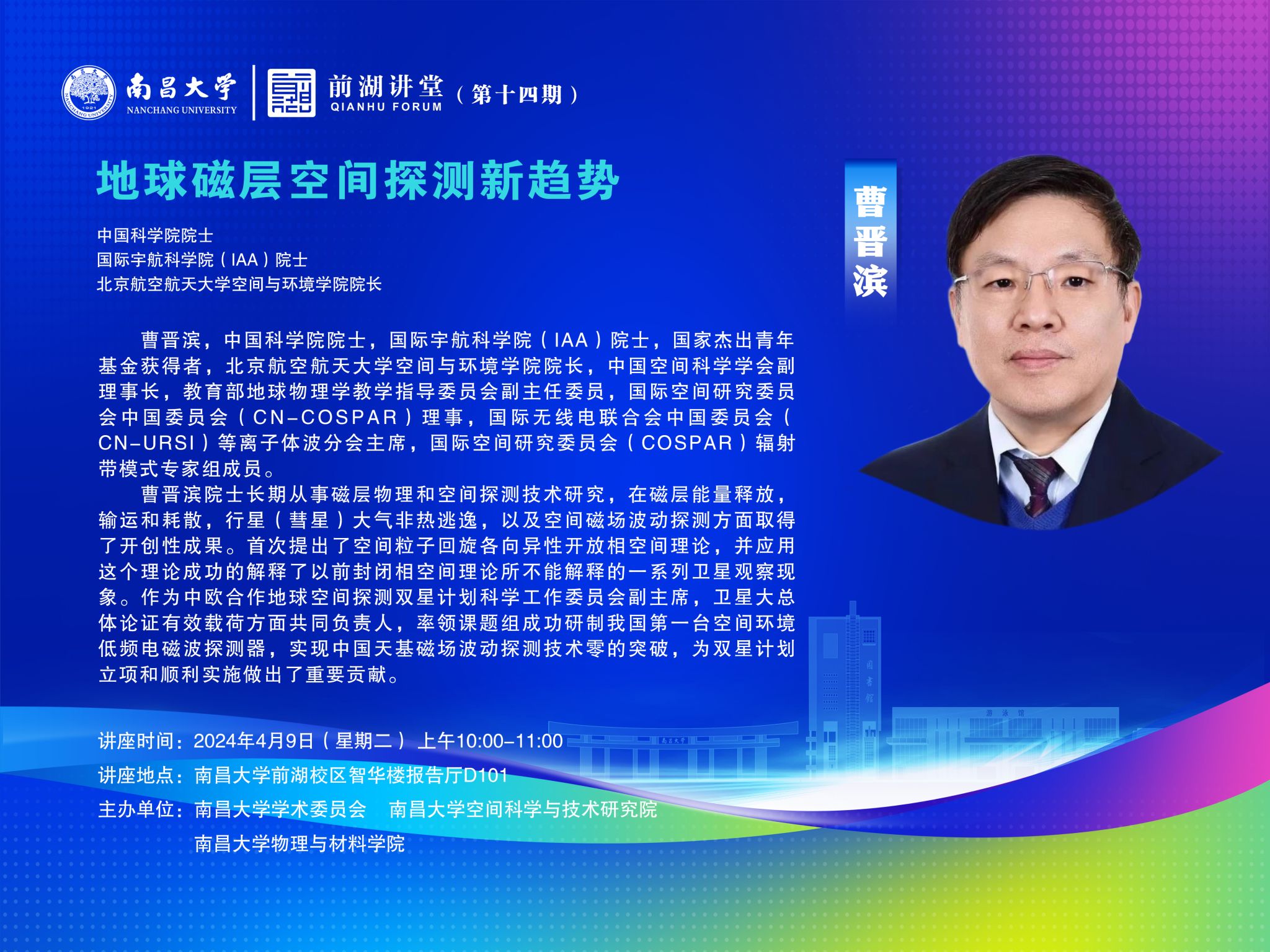 時間 2024年4月9日(星期二) 地點 南昌大學前湖校區智華樓報告廳D101