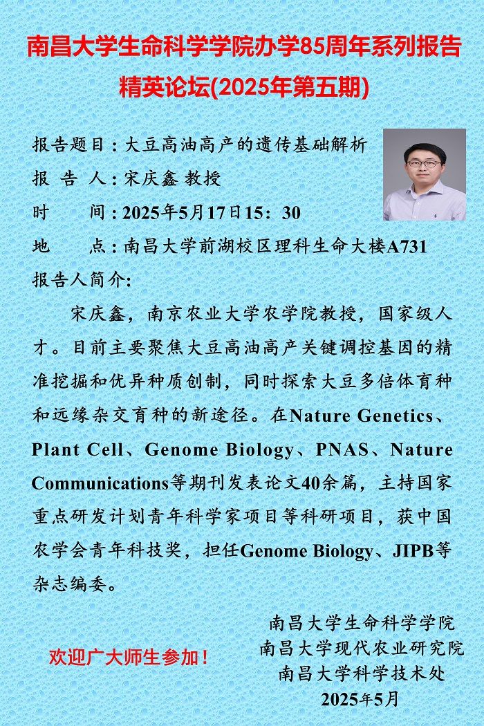 南昌大學生命科學學院辦學85周年系列報告精英論壇(2025年第五期)